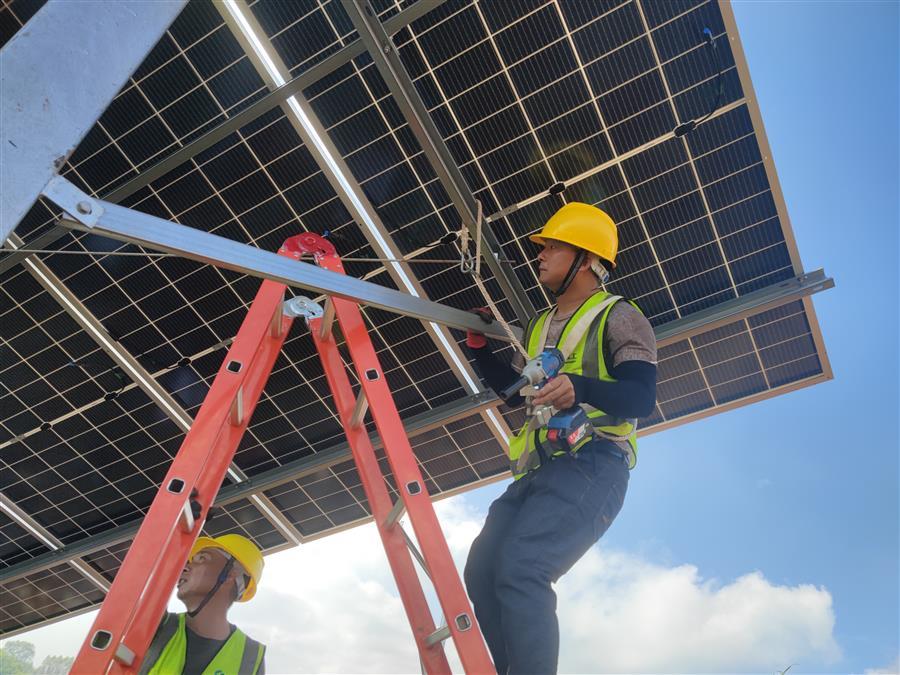 天氣炎熱,項目部及時調(diào)整施工方案,精心組織,科學(xué)調(diào)度,確保大家的身體健康和工程建設(shè)進(jìn)度兩不誤。截至目前,該項目已完成樁基澆筑工作的30.13%,支架和光伏板安裝工作的18%。