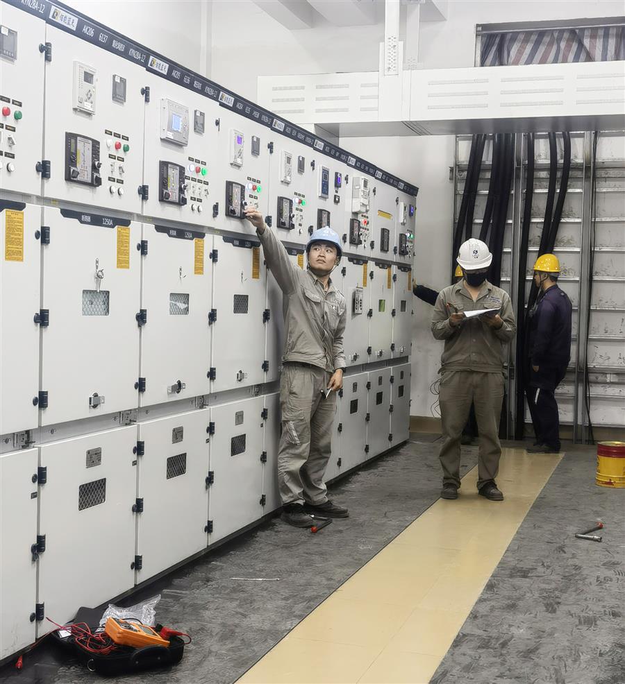 為確保按時順利送電,項目部多次組織技術人員對電氣樓進行檢查確認,特別是對高低壓柜、隔離開關等設備的功能、絕緣進行了多次檢查和測試,為保證整個送電過程安全順利進行創(chuàng)造了有利條件。