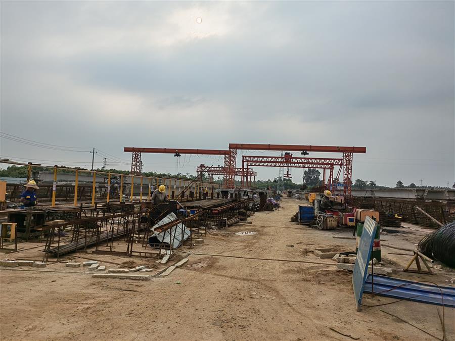 在施工現(xiàn)場,20多臺大型設(shè)備在不同時段連續(xù)配合作業(yè),運(yùn)輸車輛有序進(jìn)行運(yùn)土填筑路基、材料進(jìn)出場,100多名項目管理人員及工人分為預(yù)制梁場、樁基施工、橋梁下部結(jié)構(gòu)等班組全線鋪開,在各個作業(yè)點(diǎn)上有條不紊地開展施工作業(yè)。