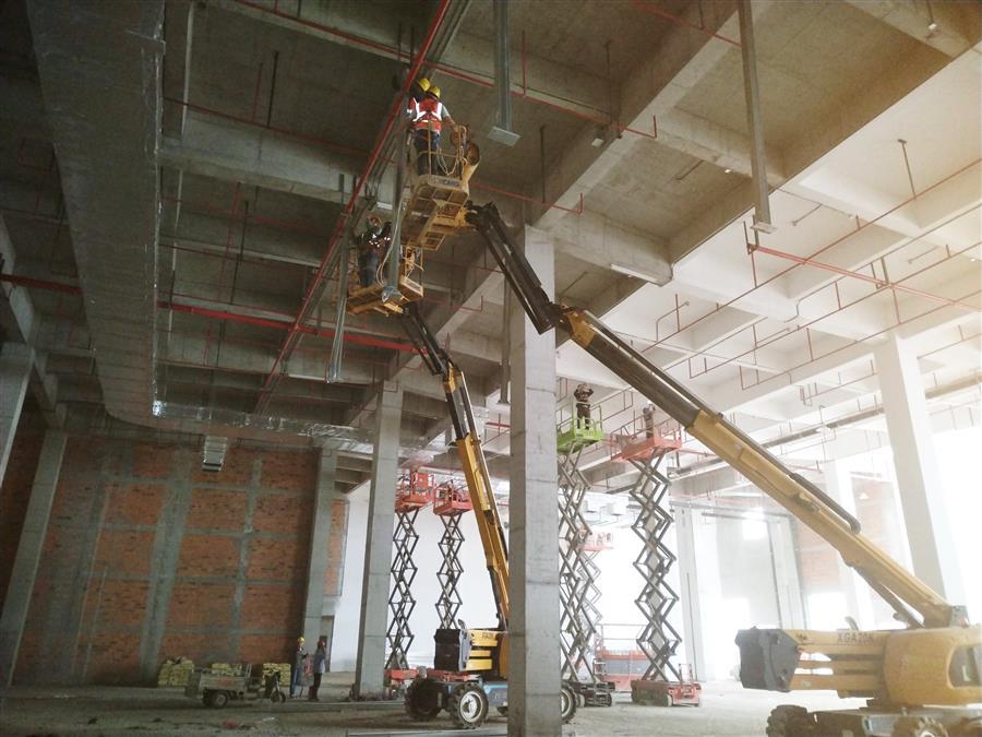 雨天巧干、晴天大干。項目部制定周密、科學的施工計劃,提前做好應急預案,每天根據天氣變化對工作時序、應對措施、安全保障等情況進行逐一落實,充分利用好天氣窗口期,因時制宜,在保障安全作業(yè)的前提下,推進穿插施工,盡一切可能搶抓進度,將攻堅再加速。目前,各樓棟水電消防完成90%,外墻膩子和外墻漆施工完成過半,窗玻璃安裝完成60%,內墻膩子完成80%;生產車間真石漆施工完成60%,49-61軸鋁板幕墻安裝完成15%,49-61軸二層金剛砂地坪完成30%,屋面卷材防水完成90%,屋面防水砼保護層完成60%;宿舍樓外墻裝飾線條完成80%,綜合樓外墻裝飾線條完成70%;室外管網路基施工完成40%。項目累計完成施工產值4.2億元,完成合同造價的82%。