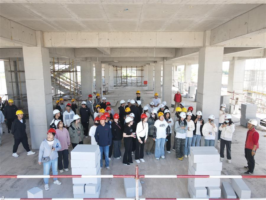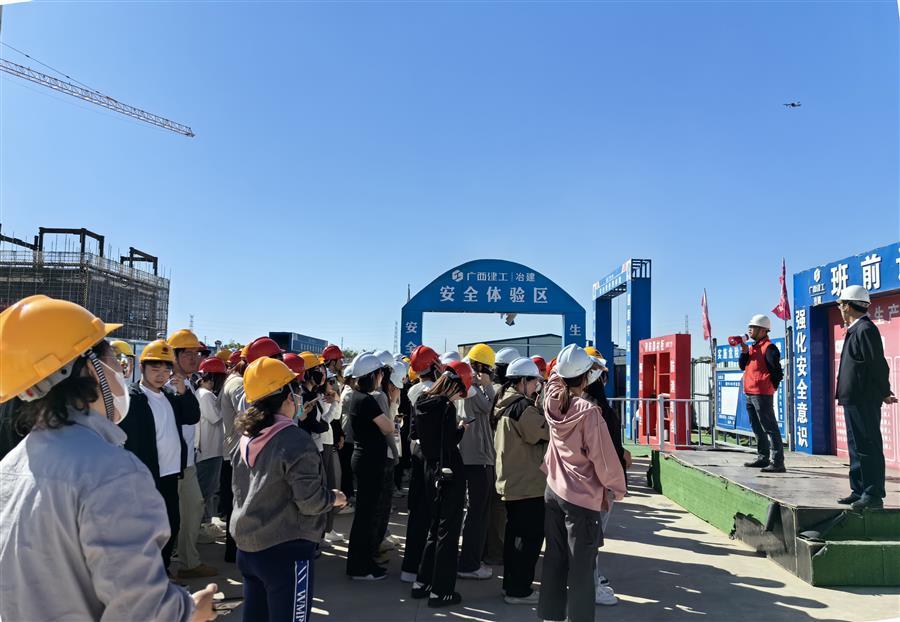 在參觀前,項(xiàng)目負(fù)責(zé)人簡要介紹了冶建公司發(fā)展歷程和項(xiàng)目概況,詳細(xì)講解了施工現(xiàn)場的各項(xiàng)安全注意事項(xiàng)。之后,所有人員佩戴好安全帽有序進(jìn)入施工現(xiàn)場進(jìn)行參觀。觀摩學(xué)習(xí)過程中,項(xiàng)目管理人員對項(xiàng)目正在進(jìn)行的二次結(jié)構(gòu)砌筑、型鋼混凝土結(jié)構(gòu)、盤扣架以及鋼筋綁扎等工序進(jìn)行了生動形象地講解,并就工程的重點(diǎn)、難點(diǎn)問題和解決方法開展了現(xiàn)場答疑交流,將在建項(xiàng)目施工現(xiàn)場變?yōu)閷?shí)踐課堂,幫助學(xué)生們更好地把理論知識與實(shí)踐相結(jié)合,推動參觀學(xué)習(xí)走深走實(shí)。