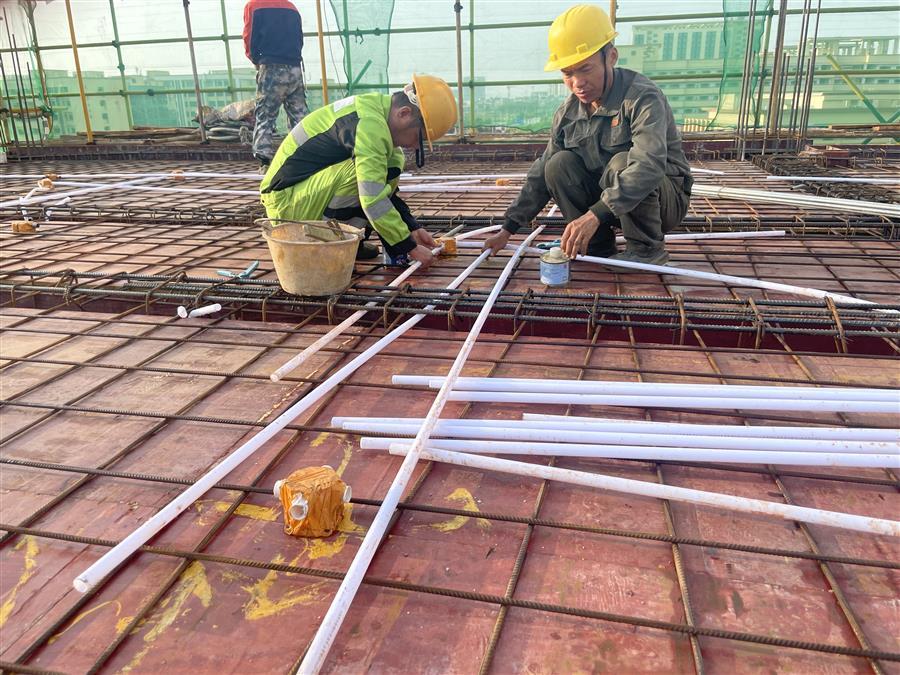 中秋將至,天氣依然炎熱。冶建公司桂海分公司承建的中國移動廣西分公司南寧武鳴區(qū)分公司生產(chǎn)調(diào)度用房工程項目施工現(xiàn)場一派熱火朝天的景象,建設(shè)者們各司其職,切割鋼筋、搬運材料、綁扎樓面鋼筋等,全力沖刺工程建設(shè)節(jié)點。