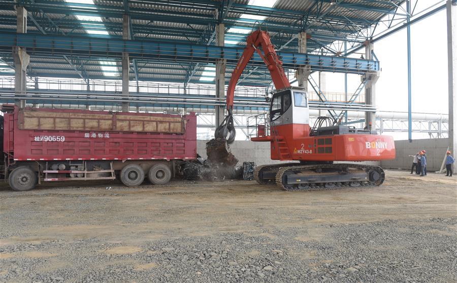 儀式上,3000噸一類沖壓片包塊廢鋼在廣西鋼鐵1萬噸碼頭卸船,隨后順利進入設備安裝分公司承建的防城港鋼鐵基地項目(一期)廢鋼處理系統(tǒng)金屬材料加工配送中心廠房及公輔設施建設項目1#庫廠房,在場所有人見證了料場啟用。3000噸一類沖壓片包塊廢鋼順利進場,這意味著該項目正式啟用,并取得了階段性勝利。