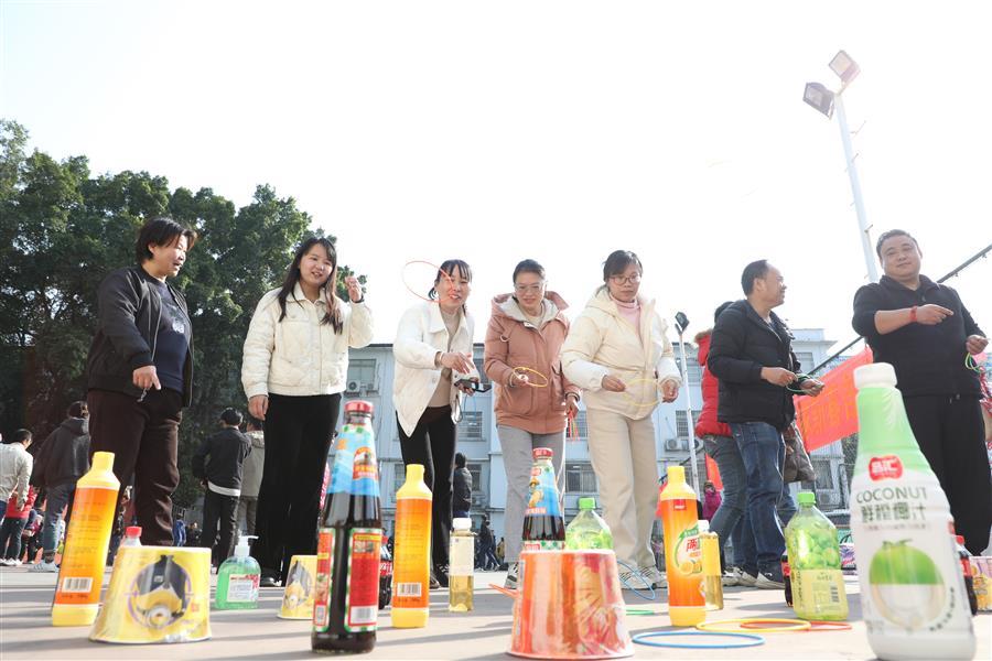 活動(dòng)現(xiàn)場(chǎng)處處歡聲笑語(yǔ)、熱鬧非凡,一派歡樂(lè)祥和的景象。在集體項(xiàng)目團(tuán)隊(duì)滾鐵環(huán)接力賽、單腿跑火車(chē)接力賽中,參與比賽的員工配合默契、銜接緊密、奮力爭(zhēng)先,場(chǎng)面激烈,觀眾的掌聲、笑聲、喝彩聲此起彼伏。游園活動(dòng)還設(shè)置擲壺、飛鏢、滾球入桶、定點(diǎn)投籃、盲人擊鼓、套活雞活鴨等8項(xiàng)個(gè)人項(xiàng)目,大家有序排隊(duì)積極參與,樂(lè)在其中,收獲滿滿,為即將到來(lái)的蛇年新春增添了滿滿的喜氣。
